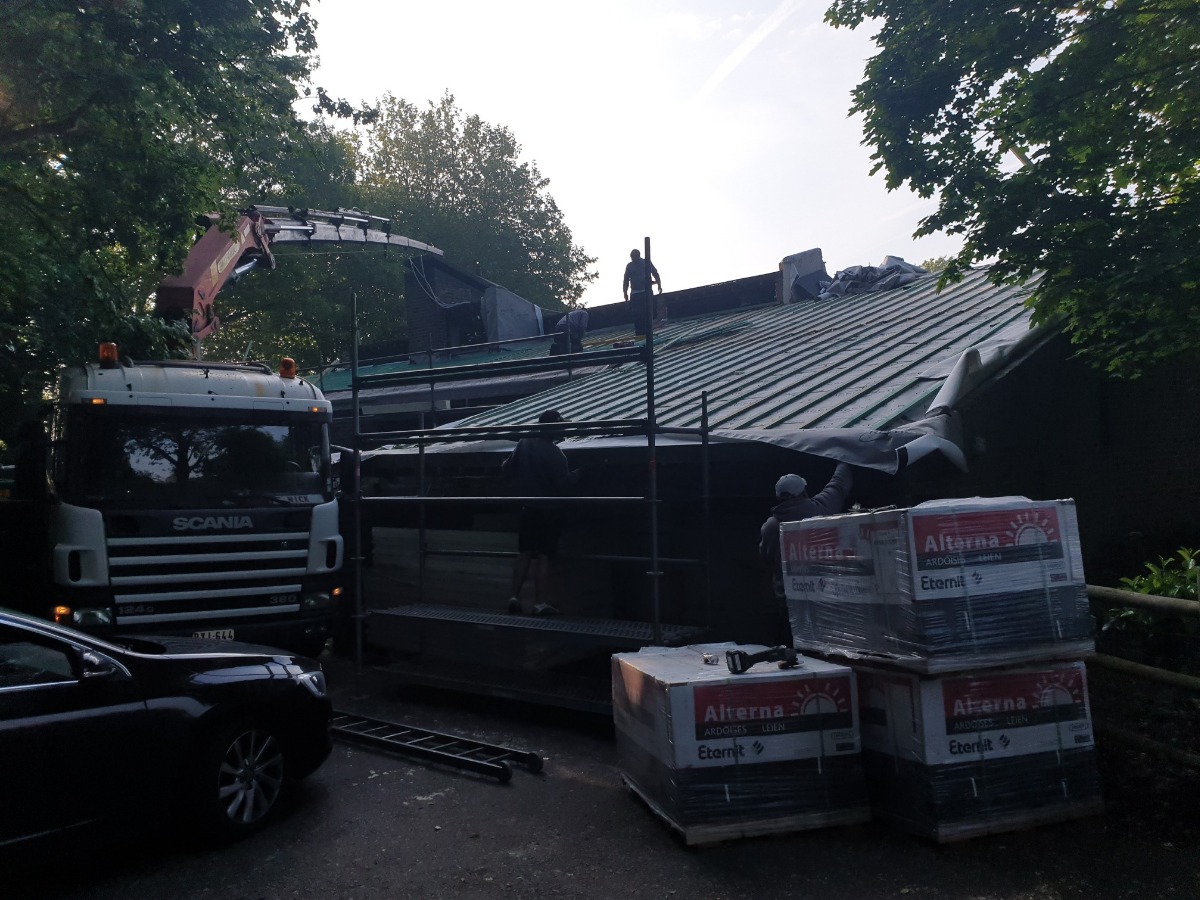 Gits : Asbestrenovatie hellend dak met asbestvrije alterna leien 40/27 donkergrijs